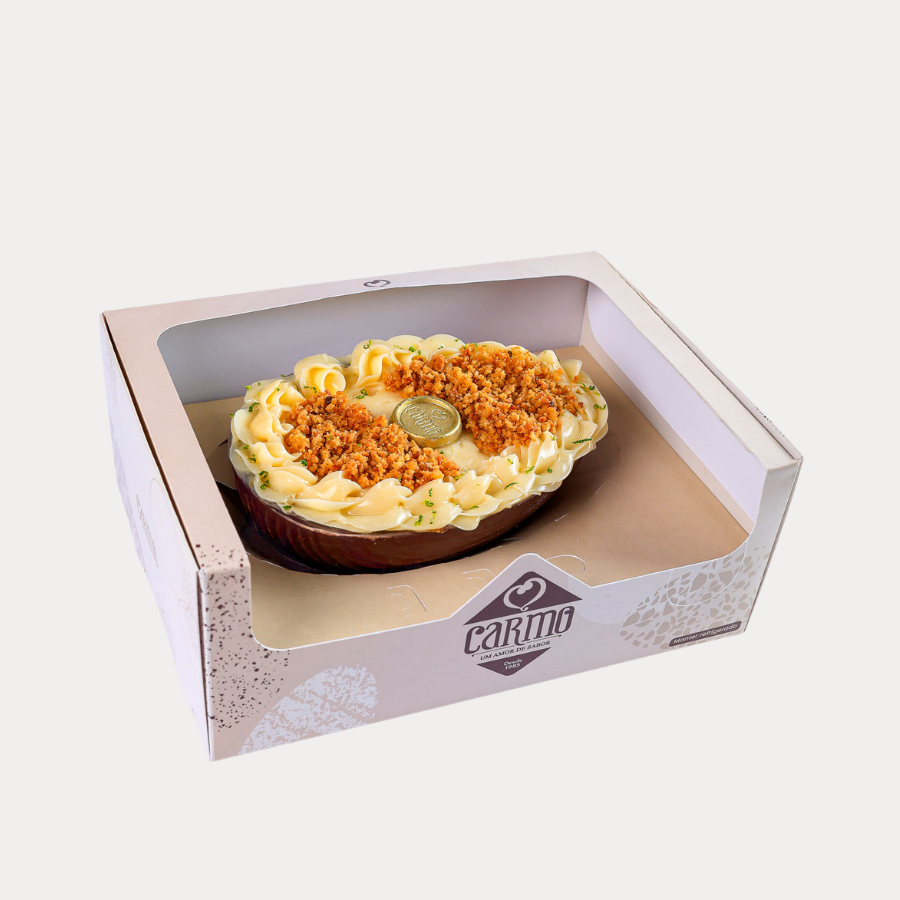 O clássico frescor do limão siciliano, maravilhosa casca de chocolate recheada com creme de limão, farofa crocante, creme branco e raspas de limão. Totalizando aproximadamente 750g. Uma combinação incrível, você vai amar!